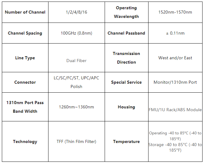 DWDM Optical Add/Drop multiplexer (OADM) is a passive optical device used in WDM networks for adding and dropping one/multiple 100 GHz DWDM channels in the C-band into one or two fibers, while letting the rest of the wavelengths bypass to the needed destination. Using the DWDM technology can add effctively WDM capability to their existing and new networks, and extend the optical signals transmission distance. DWDM OADM modules are available in single-sided (East or West) and dual-sided (East and West) configurations. With matching MUX/DeMUX units placed at each end of an optical link, multiple data channels can be combined and transmitted over a single-mode fiber trunk. The passive OADM modules can add or drop up to 4 data channels at any point along the trunk.