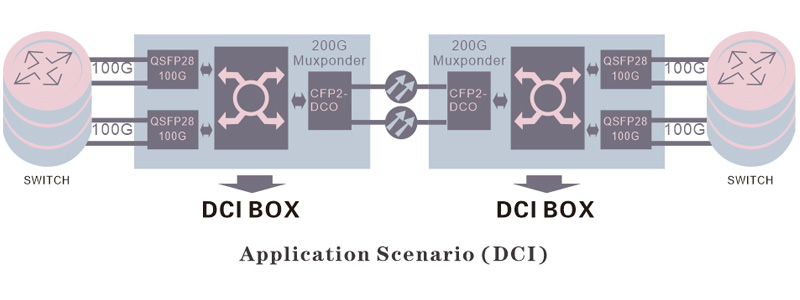 The height of a single sub-rack is 1U, a single wavelength conversion card supports 2xCFP2 DCO 100G/200G, the client side supports 4xQSFP28 access, the line side supports 2xCFP2 DCO 100G/200G access, and the line side supports flexible configuration of 100G~200G rate. Provide an intelligent and open network architecture for customers.